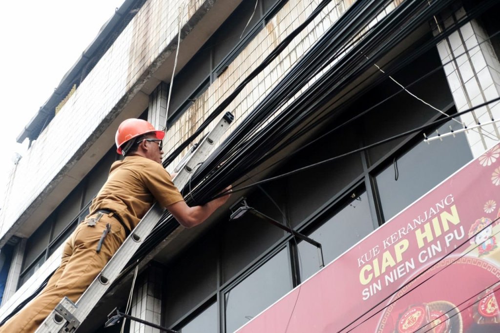 “Setiap minggu, seluruh operator turun bersama kami untuk merapikan kabel, terutama di titik rawan kecelakaan. Sebagai contoh, di Jalan Riau dan Jalan Tamblong, kabel udara sudah berhasil diturunkan sehingga tampak lebih tertib dan aman,” jelasnya.