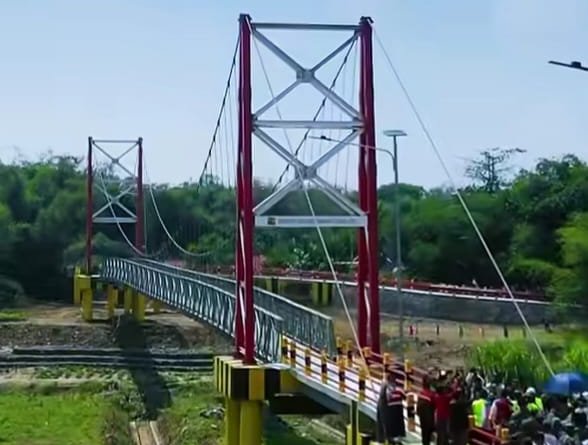 .Cirebon,media jabar net – Jembatan Gantung yang membentang di atas Sungai Cisanggarung, menghubungkan Desa Babakan Losari Lor, Kabupaten Cirebon, Jawa Barat, dengan Desa Babakan, Kabupaten Brebes, Jawa Tengah, resmi difungsikan pada Sabtu (23/8). Peresmian dilakukan oleh Direktur Jenderal Bina Marga melalui Kepala Balai Besar Pelaksanaan Jalan Nasional (BBPJN) DKI Jakarta–Jawa Barat, Rina Kumalasari, Bupati Cirebon Drs H Imron M.Ag, Anggota DPR RI Komisi X H Dedi Wahidi.