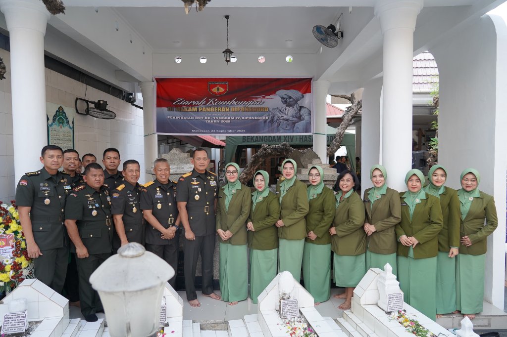 Media Jabar. Net. Makassar – Danrem 071/Wijayakusuma Kolonel Inf Lukman Hakim, M.Han., dengan didampingi Ketua Persit Kartika Chandra Kirana Koorcab Rem 071 PD IV/Diponegoro Ny. Inda Lukman Hakim, ikuti Ziarah Pangeran Diponegoro di Makassar, Sulawesi Selatan. Selasa (23/9/2025).